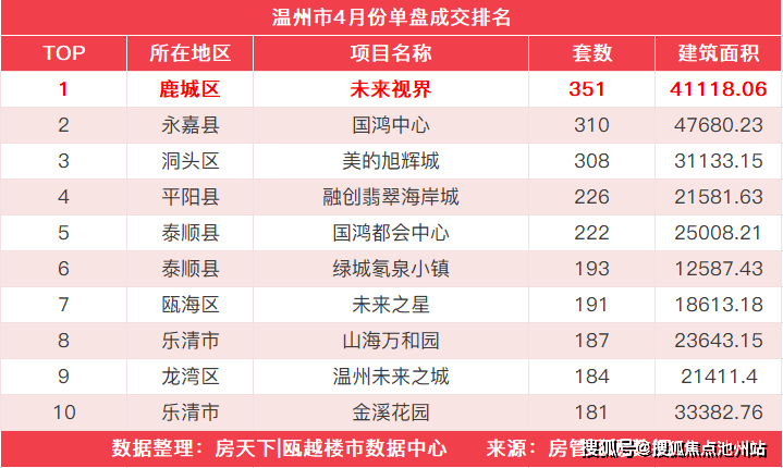 2021年鹿城区楼盘成交榜