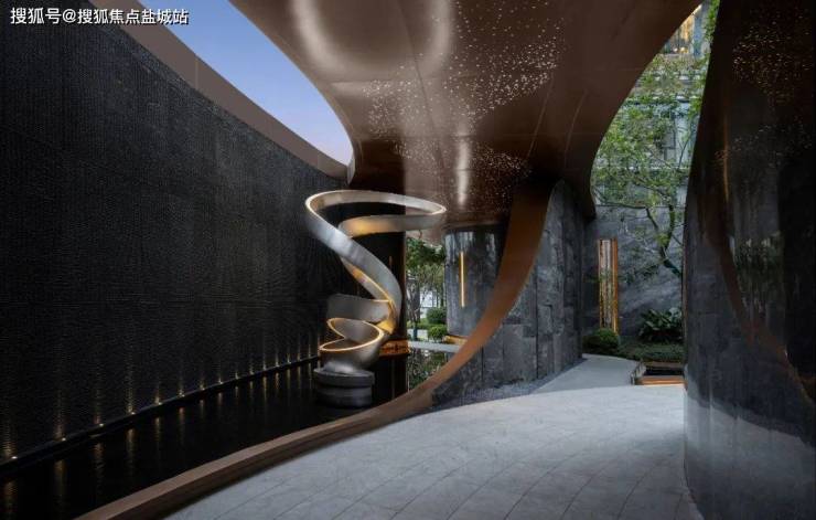 凤咏朝阳的北入口都很讲究,就像下一秒要拥人入怀的臂展——凤咏朝阳用浓烈的仪式感打造了两大主入口,用的都是星级酒店的做法,让我们不自觉就会调整入户前的情绪。重头戏更在大门之内,他们把江南四大名园的造园手法,运用到了凤咏朝阳这座「游园式大平层」的园区中——