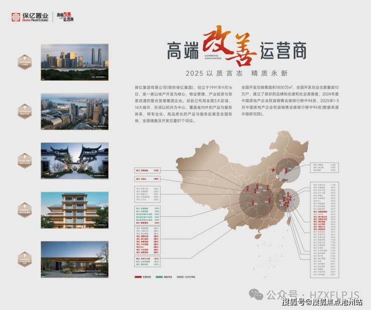 浙江品牌房企20强,2025年应势发布“高端改善运营商”的全新定位,秉承“美好生活精质家”的品牌理念,坚持精耕深拓,专注产品,稳健前行。已布局全国三大区域、14大重点城市。