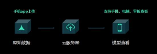硬件可由手机操作控制自动扫描,电机带动转轮旋转上下及四周旋转拍摄,获得的画面可通过WiFi网络先在手机上预览自动拼接效果,以便判断复杂空间环境下的视觉盲点,从而移动设备进行下一机位的信息采集。房屋色彩及点位信息通过WiFi网络上传至云端服务器进行三维模型的构建。