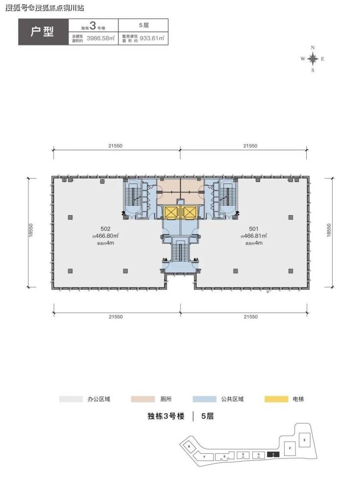 『E座标准层』标准层面积约2000㎡