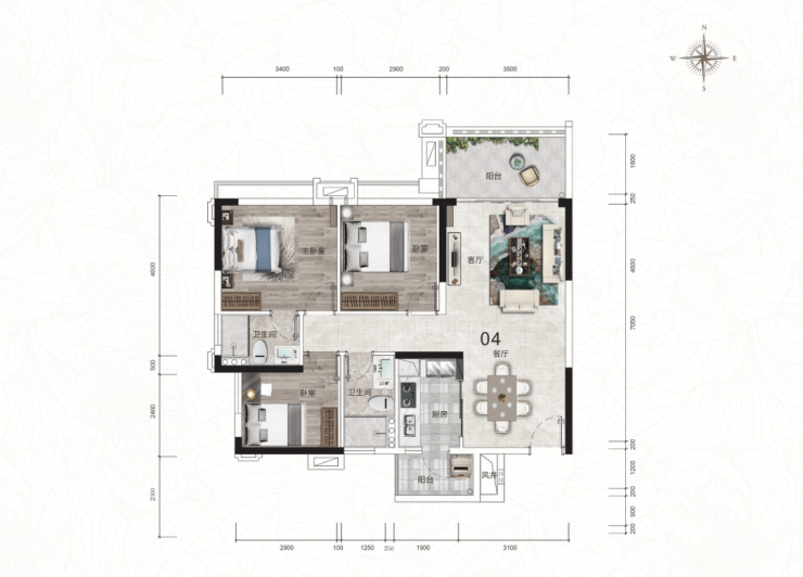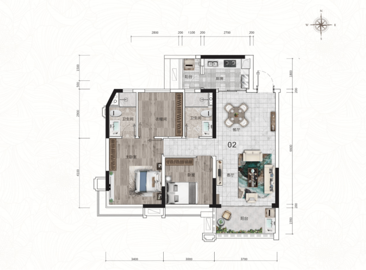 三房两卫超大空间利用率,灵活满足不同阶段的居住需求。