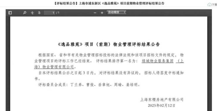2025年2月绿城物业服务集团(上海)物业管理有限公司中标滨江一品苑前期物业项目,正式成为滨江一品苑物业。