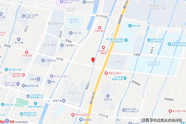 楼盘周边医疗资源较为丰富,直线3km范围内有8个一级及以上医院。其中慈溪市中医医院距离楼盘1.1km,为医疗需求提供了保障。