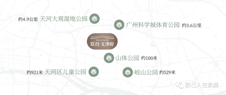 外揽“1+4公园”:山体公园、天河区儿童公园、岐山公园、天河大观湿地公园、广州科学城体育公园。