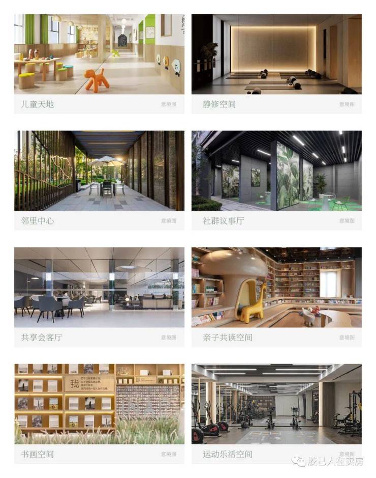 【八大生活空间】儿童天地、静修空间、邻里中心、社群议事厅、共享会客厅、亲子共读空间、书画空间、运动乐活空间