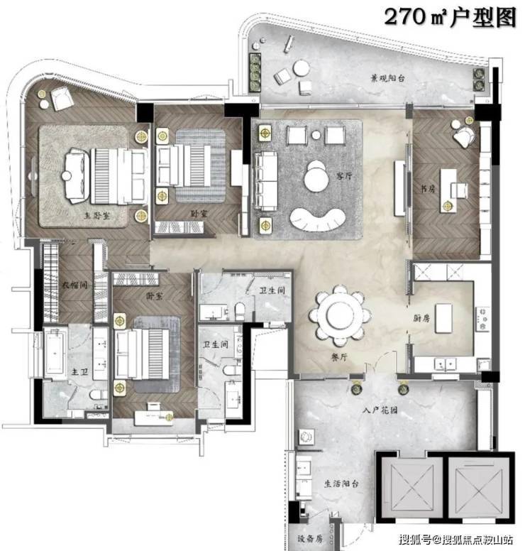 ⑥星级主卧套房,配备衣帽间及四分离卫生间