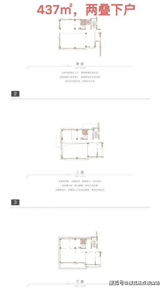 ●产品户型:两叠(上叠392㎡、下叠437㎡),三叠(上叠 285㎡、中叠279㎡、下叠305㎡)