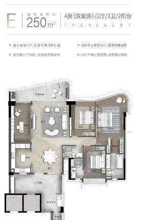 【A户型】王牌户型 270㎡环幕江景四房,约9米超大邮轮式阳台,一线望江无遮挡,专梯专户,墅级空中双花园,约28㎡超大私家庭院,多功能空间,约42㎡超大主卧空间,270°环幕江景,阔绰双主套房设计