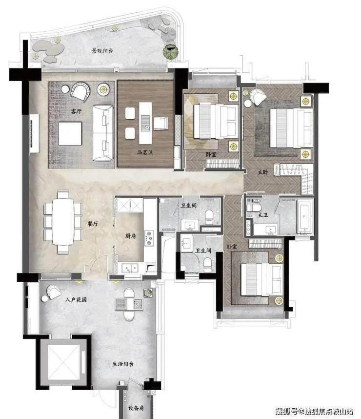 ④超低容积率仅0.99%,除自家独立花园外还打造5个大型下沉式花园并有丰富的功能(如儿童乐园、瑜伽健身冥想、开放剧场等),可满足不同年龄段业主需求。