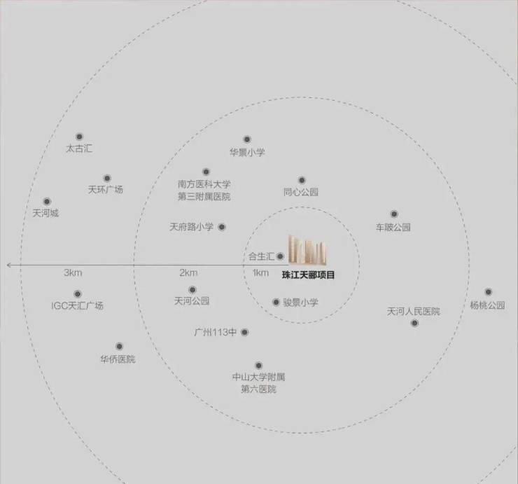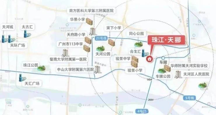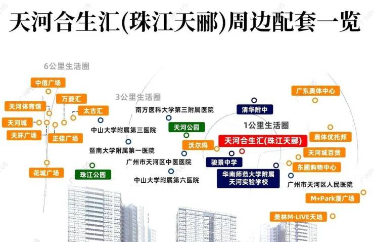 珠江天郦西侧有在建的大型商业综合体合生汇广场,属于高端城市综合体,有40万㎡的体量,汇聚了五星级酒店、高端会所、大型商业购物中心,未来这个“超级综合体”建成后,能级或比天环广场、万菱汇还要高,珠江天郦的业主不仅下了楼就能逛街,还能通过商场串联地铁、写字楼等业态。