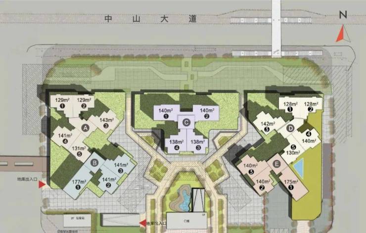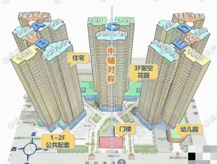 项目总共5栋楼,A栋和B栋、D栋和E栋是两栋并在一起的。由于紧挨着骏景花园,南向视野被遮挡,可能要25-26楼以上才能开阔点,北向的就受中山大道噪音影响,看着城中村。
