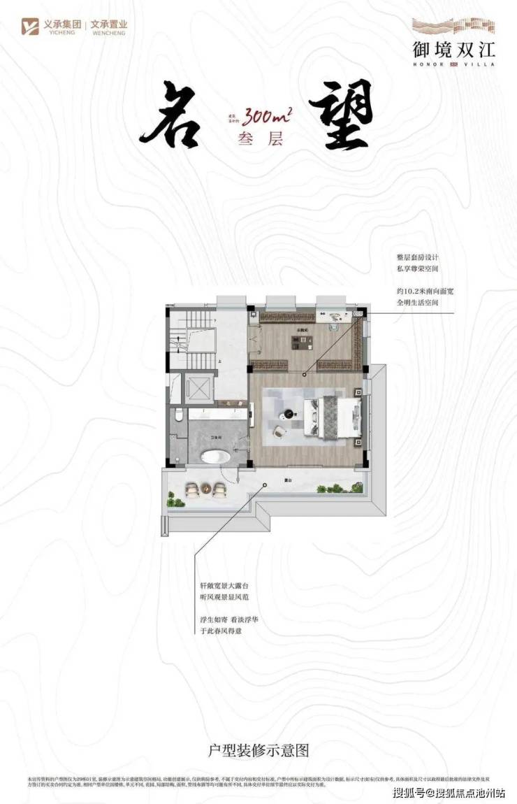 御境双江建筑面积约300㎡名望户型,以稀缺的独立入户形制,实现南北双围合庭院,南向有约10.2米大面宽;一楼270°轩窗采光,暖阳和窗景“透”入客厅深处。二、三层均为套房设计,MAX 级宽景露台,揽景入室,带给主人雍容雅致的居住体验。