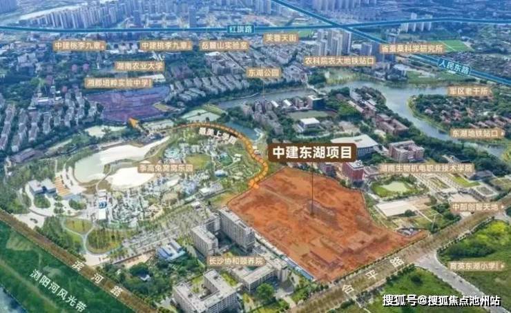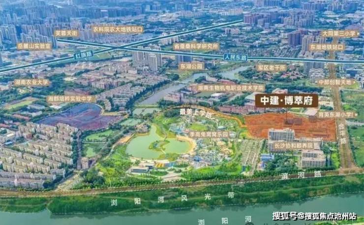 然后就是景观资源,中建博萃府与约840亩东湖生态公园仅一路之隔,相当于把 “生态绿肺” 搬到了家门口,同时向南约300米还有浏阳河风光带,全家休闲游玩、日常饭后散步皆可轻松实现。