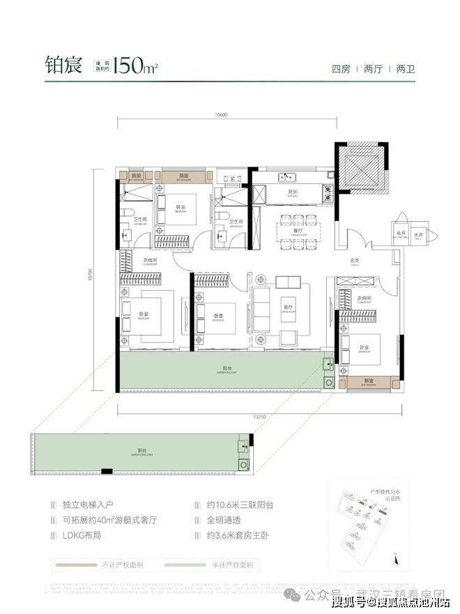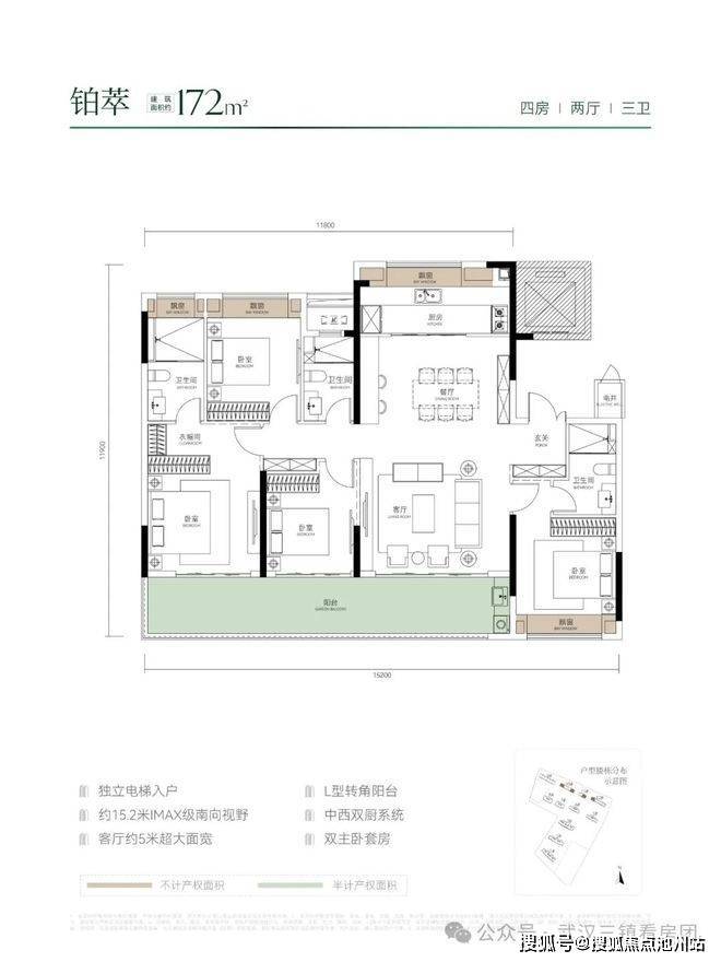 建面约172㎡的产品,大四房设计,真正的“孤品级”洋房。