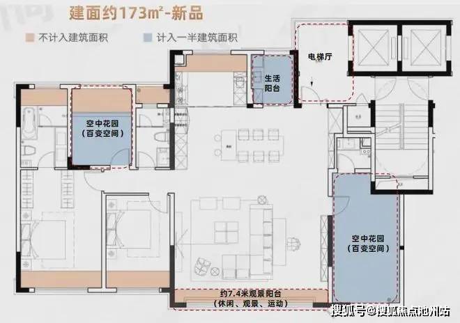 建面约173㎡户型,赠送超50㎡