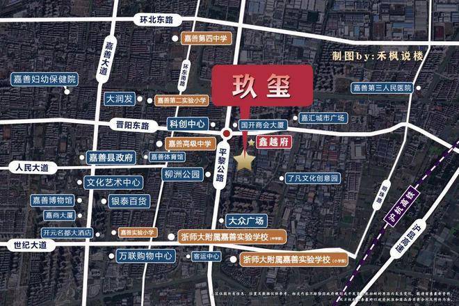 玖玺位于嘉善主城区,晋阳东路与闽江路交汇处。