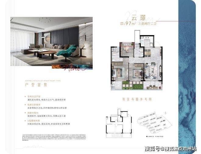 同时半岛九号建面约97㎡户型呈大面宽、短进深的特点,经过多次精研细凿,形成更通透的全明户型,让室内采光、通风效果俱佳。