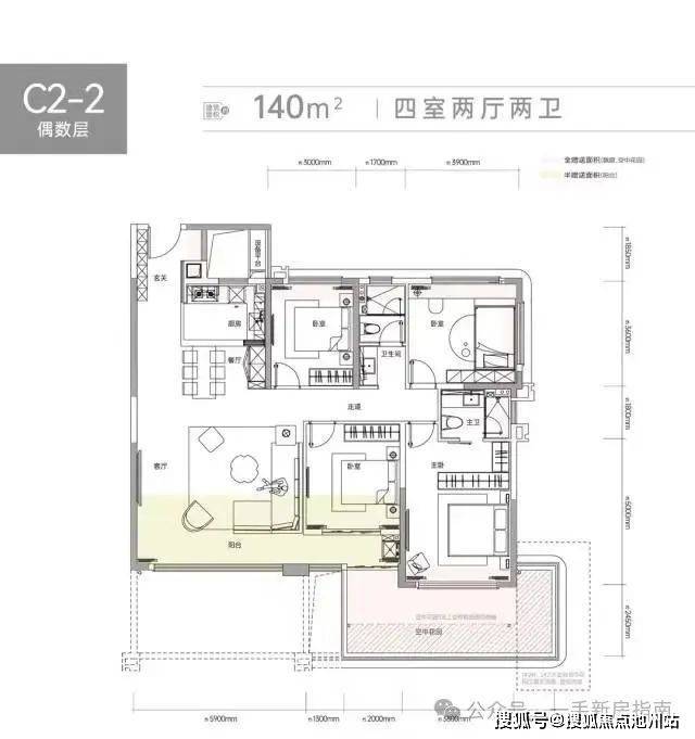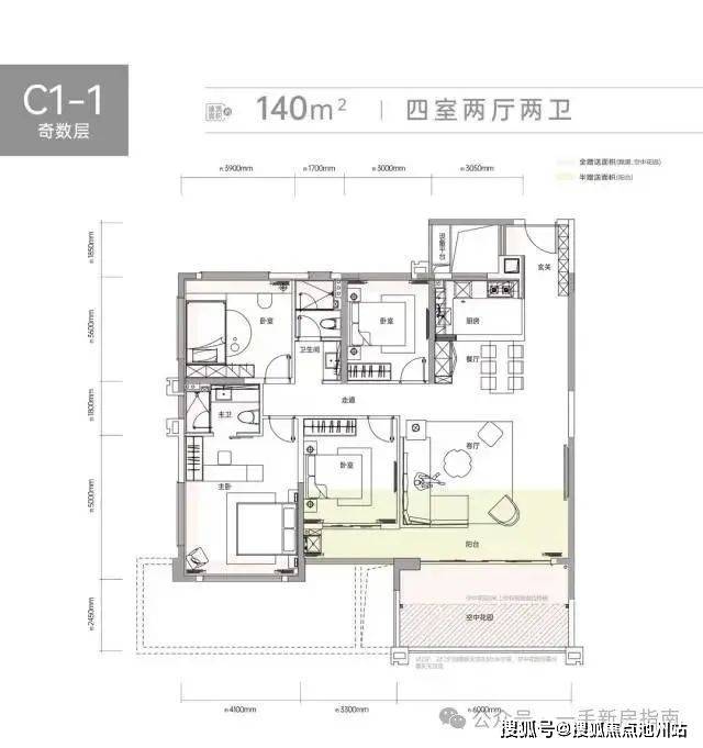 边户都有带转角的露台,中间户也都有空中花园的设计,而这些与第四代住宅的关键词“空中花园”“开放式露台”相吻合。