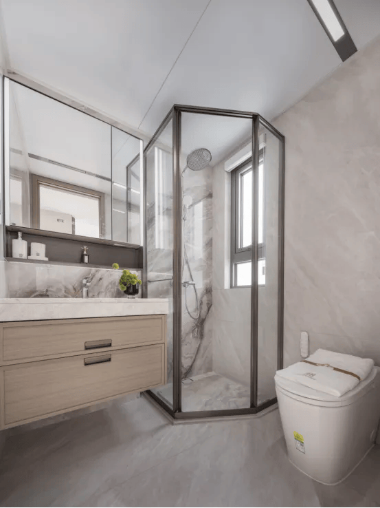 卫生间吊顶:奥普暖风机与防潮铝蜂窝大板相结合,具备防潮与抗污功能,为生活带来健康与美观,实用性显著。在冬季,其暖风功能有效抵御寒冷。