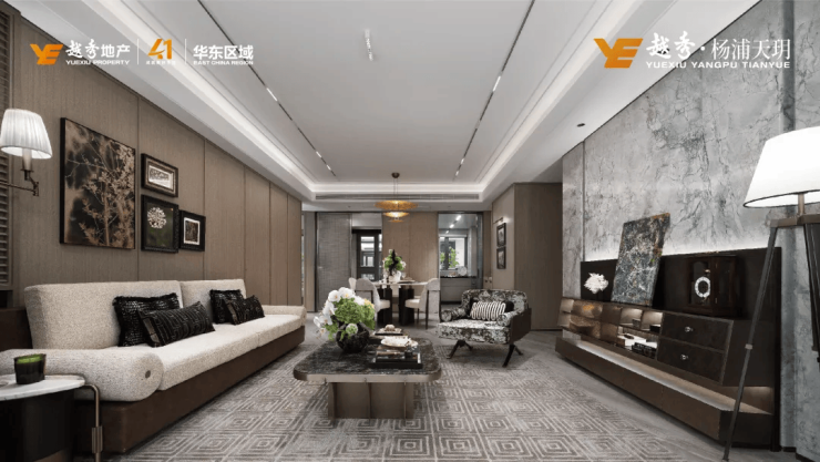 为了营造归家的仪式感,越秀杨浦天玥精心打造了宽约35米、高约5.1米的酒店式宏伟门头,并引入了价值不菲的名贵黑松。在酒店式入户大堂的营造上,精选了雪山飞狐奢石、高山流水奢石、星白奢石等珍贵材料,将品质感提升至极致。同时,酒店式入户大堂汲取海派经典之精髓,融入了古铜色金属格栅、海派风格的拼花装饰(首层及地下大堂)、以及海派复古压花玻璃等元素,营造出浓郁的人文气息。