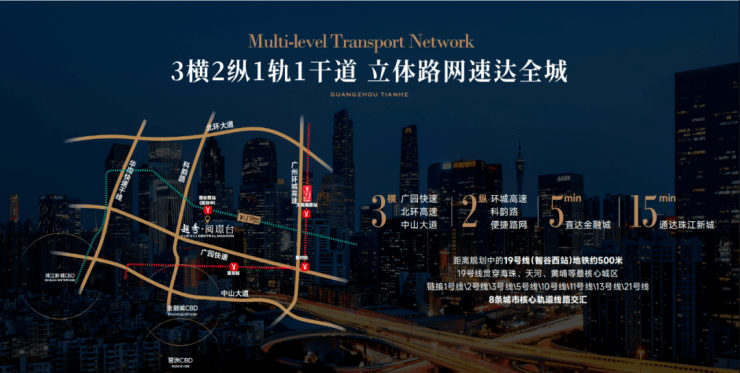 北环高速+广园快速+中山大道/环城高速+科韵路3横2纵主干道