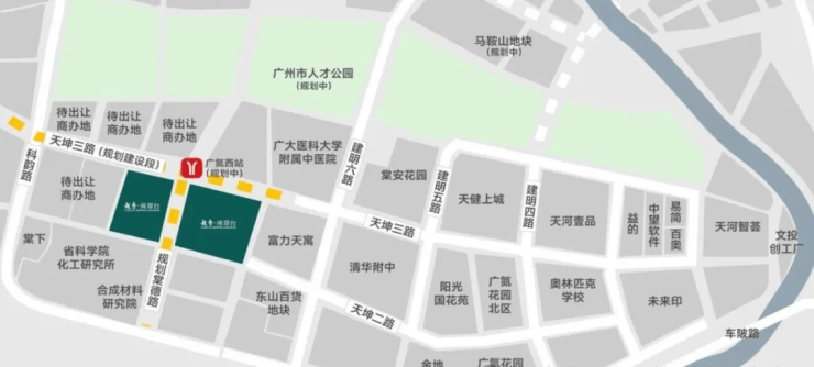 约1km 21 号线棠东站(已开通)+ 规划 19 号线广氮西站 未来4站珠城 6站琶洲