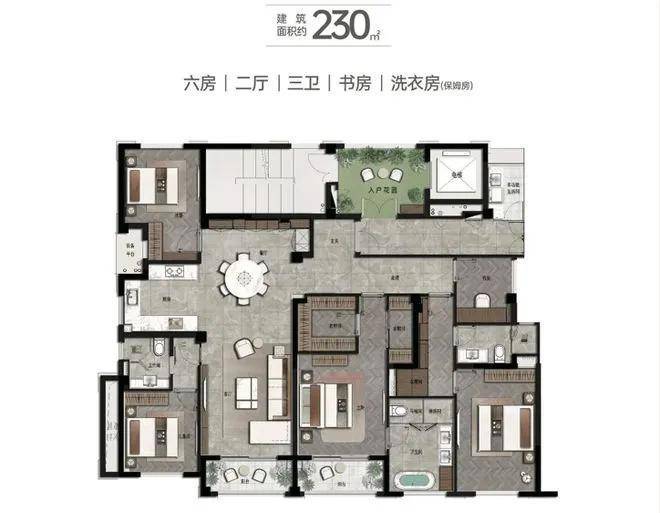 前湾·峰度天下挖掘更深邃的居住需求,以独具匠心的空间定制手法,将230㎡大平层采取建面约160㎡+70㎡子母套设计,以一种两全其美的方式,诚意服务“候鸟型”业主的特殊居住需求,使两代人各安其所,各得所居。