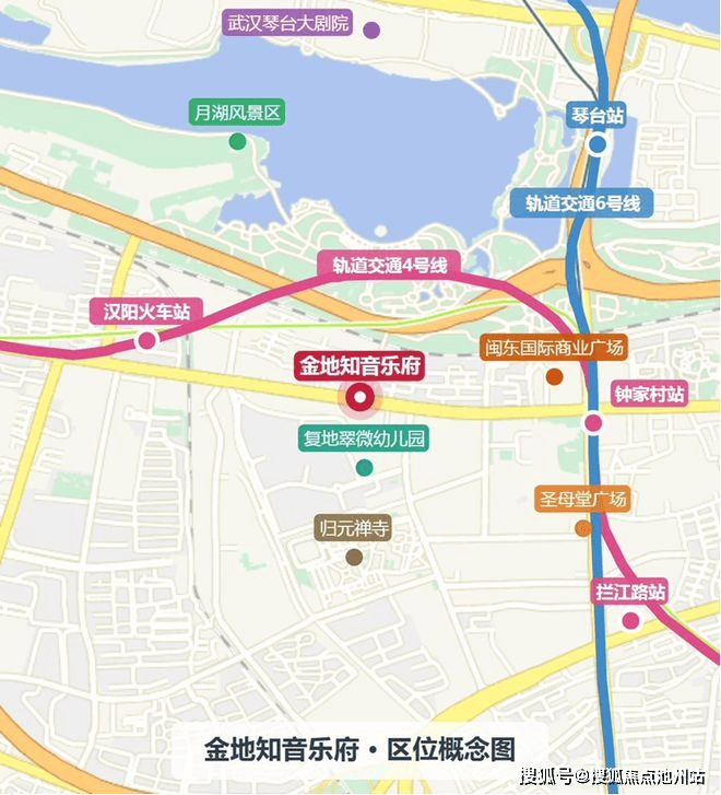 项目地处汉阳大道以北、车站横路以西,紧邻汉阳核心板块钟家村,这里是汉阳传统的商业中心,也是武汉三镇的交通枢纽之一。知音乐府距钟家村地铁站(4号线/6号线换乘站)约600米,步行10分钟即可到达。此外,琴台站、汉阳火车站、拦江路站均在1公里范围内,轨交出行非常便利。