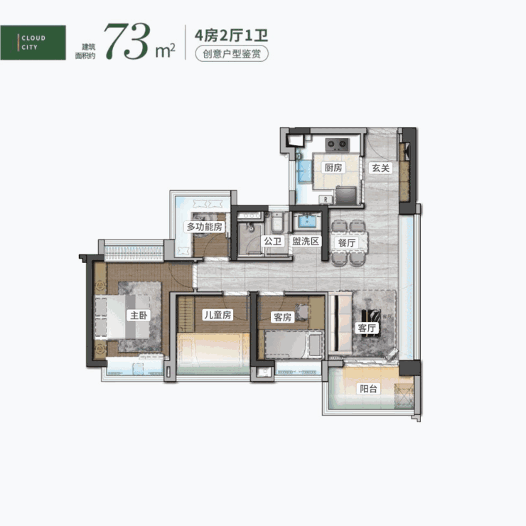 其一,项目主打建面约73~105平全四房设计!没看错,最小也是四房起步,直接一步到位,四开间朝阳,叫人拍手称绝!