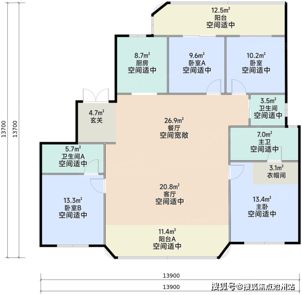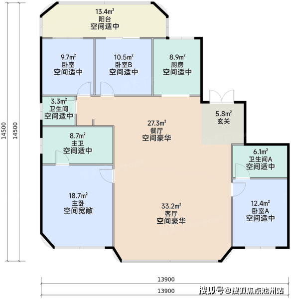 该项目总共14栋住宅、1栋写字楼、1所九年一贯制学校、1所幼儿园。11栋超高层。一期共5栋楼,1栋高层和4栋超高层,户均165㎡,定位改善。面积段为130-225㎡所有楼栋均在1F或与商业顶层间设置架空层。整体成围合式布局,中间成中央景观,前后楼间距55.6米。这个间距来说不算很大。又有是超高层和高层结合。相比现代第四代住宅和低密的项目还是有点“刚”的。