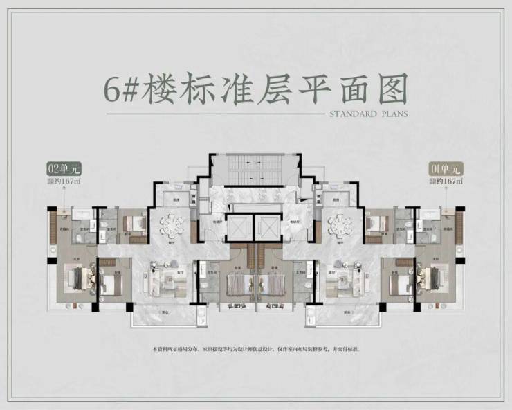以人居的纯粹表达,项目在整体楼栋上,以北高南低、横向平行的对称式美学,保证每一户的南北开阔度,让居者的景观视野更宽广;同时打造两梯两户,以崇的归家仪式感,给生活至臻的礼遇。