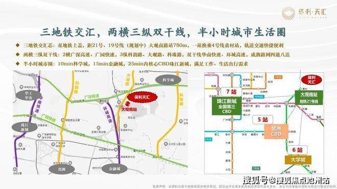 在交通配套方面,保利天汇构建了 “地铁 + 快速路 + 主干道” 的立体交通体系。轨道交通上,项目距离地铁 21 号线大观南路站约 1.2 公里,步行虽需一定时间,但可通过社区接驳巴士或短途骑行实现高效换乘。搭乘 21 号线,1 站即可换乘 4 号线直达金融城、琶洲,4 站至员村换乘 5 号线速达珠江新城,商务通勤便捷性突出。