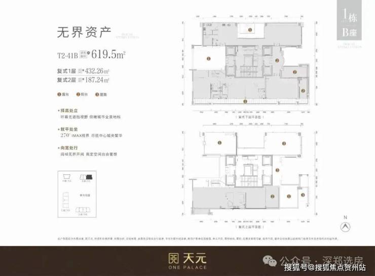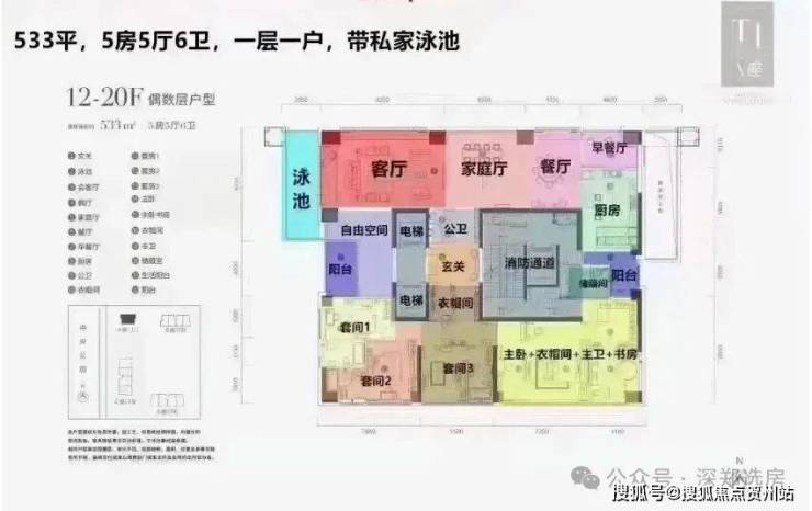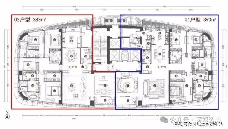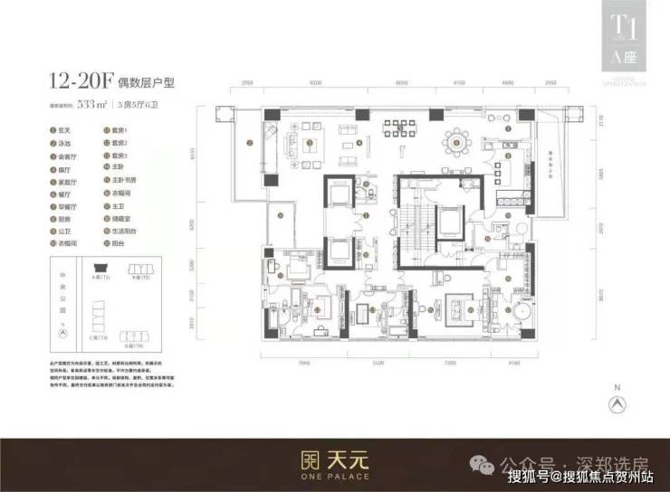 T1栋则是更加奢华的3梯1户(一层只有一户),533-540㎡