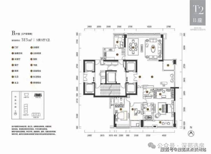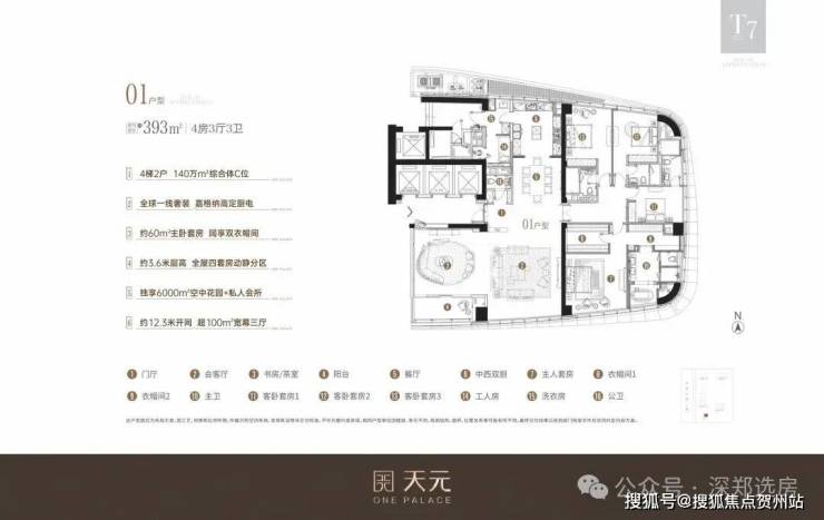 【T7-01户型鉴赏】约393㎡四房三厅六卫