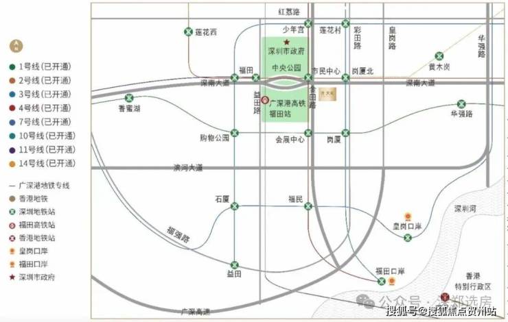 无缝接驳“五线换乘”岗厦北综合超级枢纽, 2公里内即达全国最大陆路口岸福田口岸及皇岗口岸