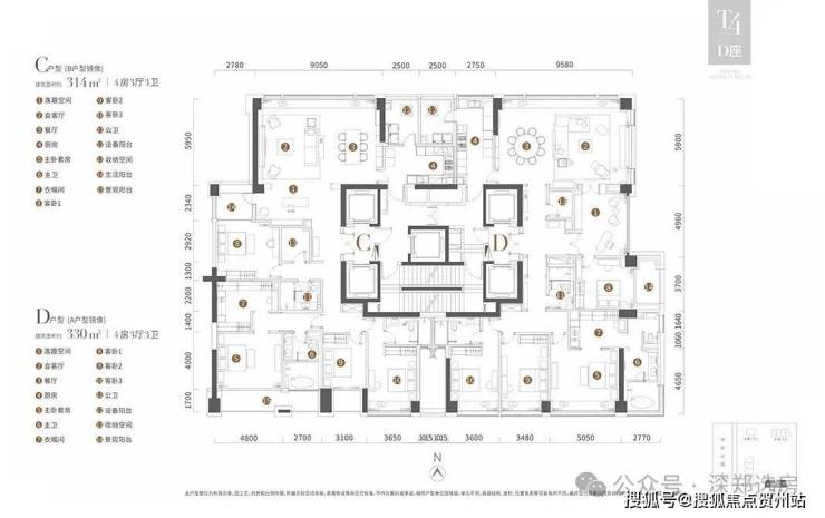T4栋为314平和330平4房3厅3卫户型