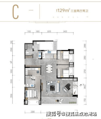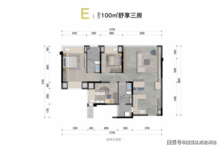 100㎡三居室:户型设计合理,空间利用率高,适合改善型家庭