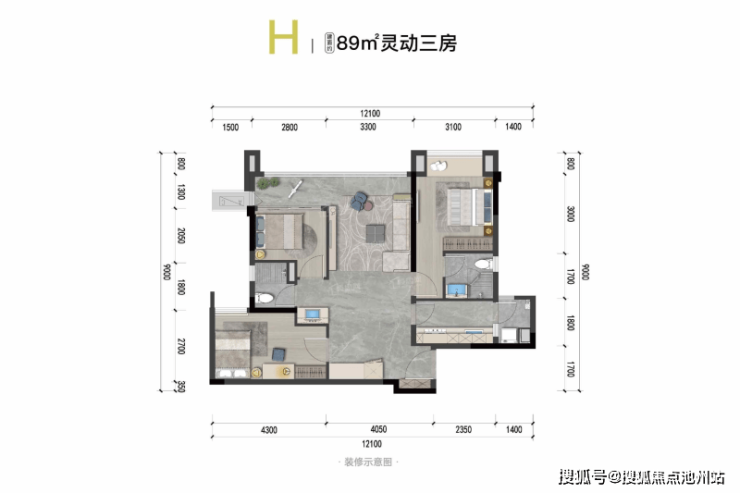 89㎡三居室:户型方正,采光充足,适合刚需家庭