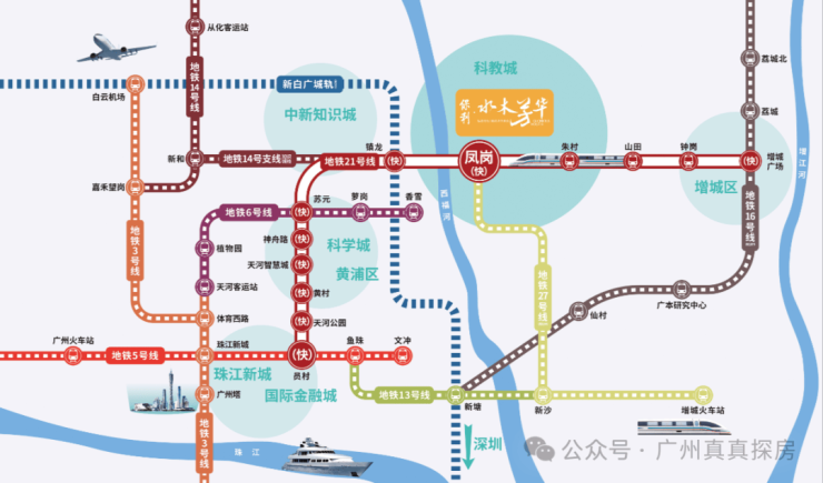 项目落位21号线上盖,2站科学城 4站智慧城!规划27号线交汇,地铁价值不可估量。2城际2快速4高速:项目旁是广汕公路,新新快速与荔新公路,接驳广园快速。北三环、花莞、广河以及增天高速,一站镇龙接驳穗广深、新白广城际,北上白云机场,南下东莞深圳。