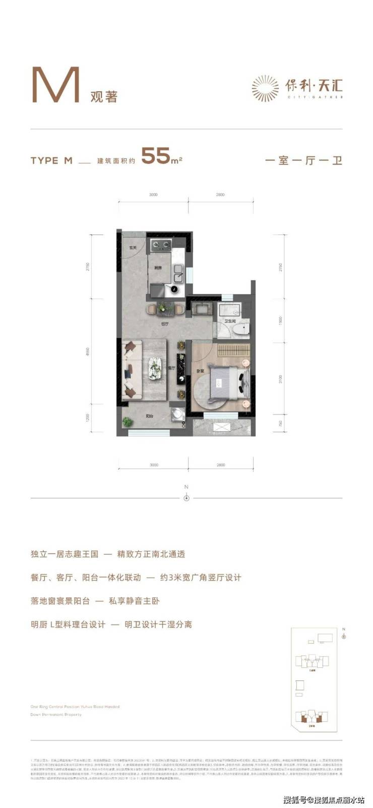 户型亮点:大一房、明厨明卫、干湿分离、餐厨一体、有阳台!