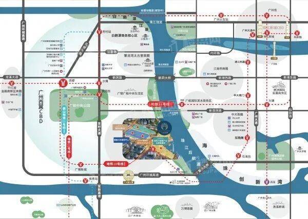 该项目周边有三条地铁线路交汇,包括地铁10、11、22号线(在建中),串联了天河区、白云区、越秀区、荔湾区和海珠区,连接了广州火车站、广州东站等大型交通枢纽,出行方式十分便捷。此外,项目还临近多条高速公路和主干道,快速接驳环城、东新高速等,方便居民驾车出行。同时,水上交通和隧道交通也为居民提供了更多选择,让出行更加灵活便捷。