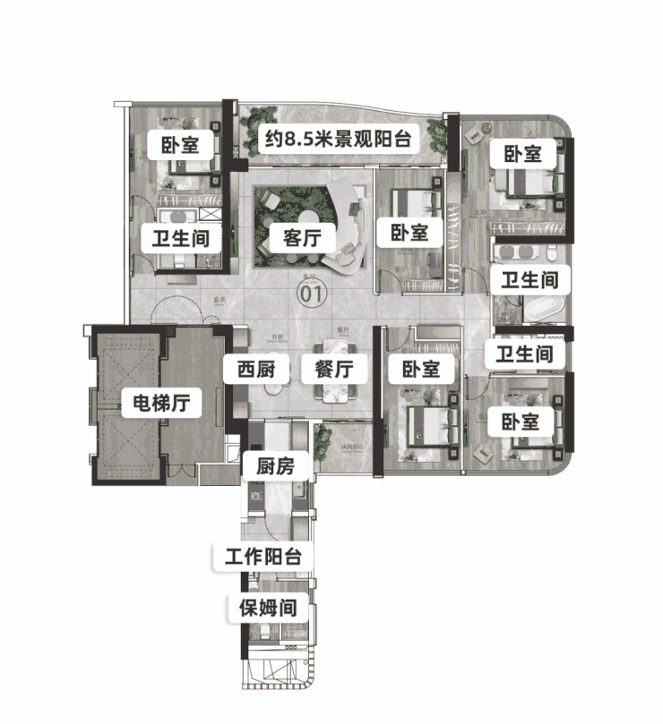 建面约285㎡ 5+1房