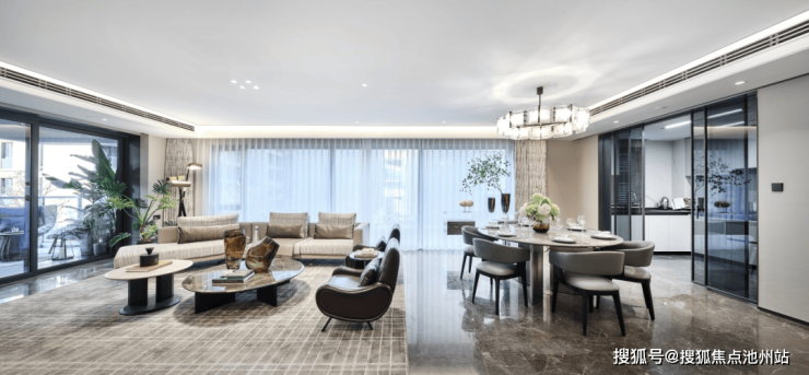 就户型设计来说,餐客厨阳台相连的LDKG设计不少,但能做到约94㎡一体化空间的不多。约11.2㎡星级私厨、约30.5㎡中西双餐厅、约38㎡景观客厅、约14.3㎡户外客厅一线串联,不止以尺度扩大功能,还可形成视线对望,增进家庭成员情感互动。
