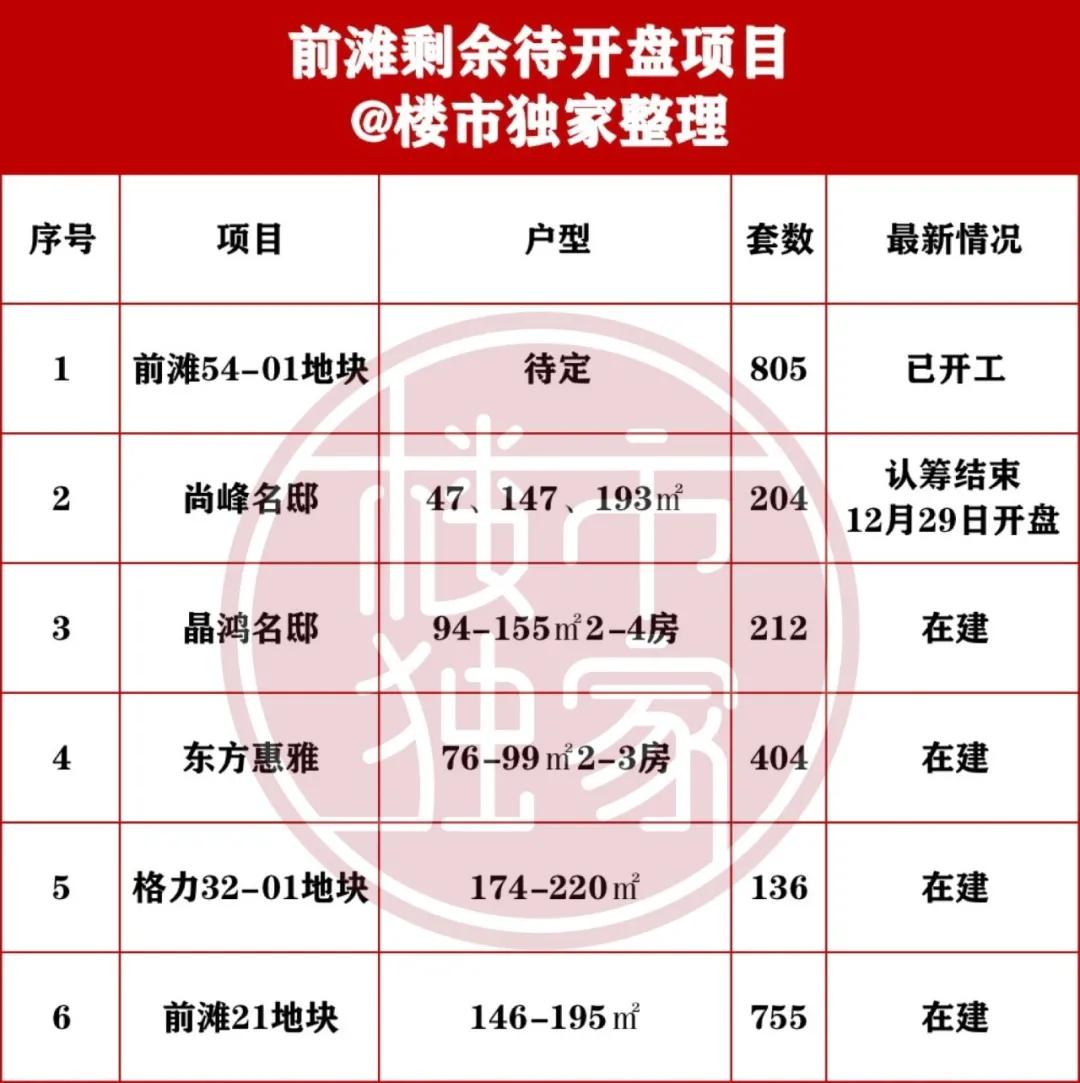 除了54-01地块,前滩还有5个新盘,其中尚峰名邸认筹已经结束(点击查看一房一价表),其余几个项目一起来看下较新进展👇
