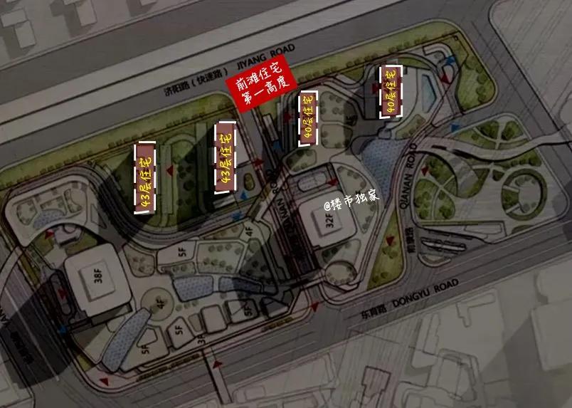 21地块将会是前滩的住宅高度TOP 1一共有4栋超高层住宅预计面积段为146-195㎡2幢总高分别为159.5米、195米办公楼以及5层大型商业建筑