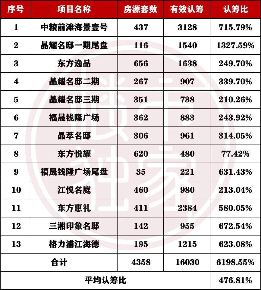 (尚峰名邸最终认筹公示尚未出炉,因此没有统计进去)