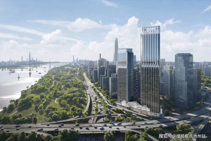 无背立面纯玻璃幕墙体系,公建化城市界面感,突破传统建筑棱角分明的边界感,以360°环幕落地玻璃幕墙体系,搭配横向金属铝板线条造型,阳台外侧采用超大玻璃分隔,保证看江面视野,阳台地面与室内无高差化处理,地暖通铺至阳台;阳台转角柱采用型钢柱设计,通过加强结构强度尽量减少柱截面,不浪费每一寸江景资源。