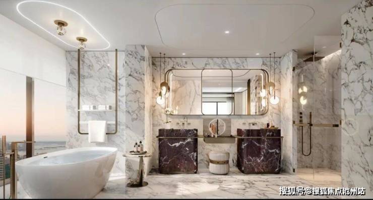 全屋从玄关到客厅,采用大量奢石铺装室内,皮革硬包采用大量弧形线条;厨房采用嘉格纳+博世组合配置;全屋卫生间采用高端岩板通铺。全屋配置华为智能化,联动全屋让生活更简单;全屋采用反渗透级别净软水系统,让生活用水更放心。
