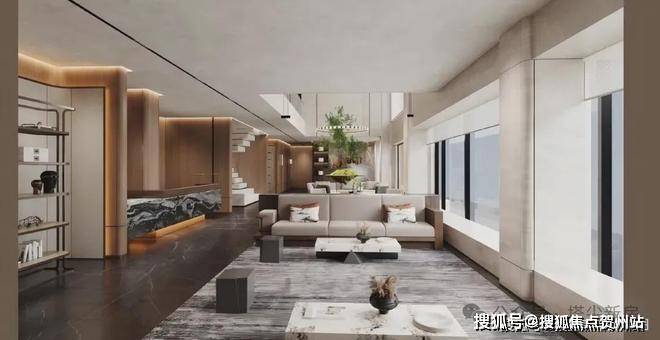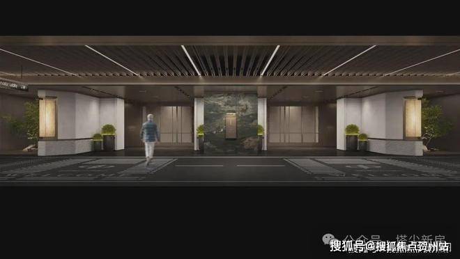 星级车库:车库双大堂设计,大面积采用天然浅色石材,并于天然奢石加以点缀,光厅顶面采用金属构件,结合灯带,增加层次感,彰显项目高定品质。